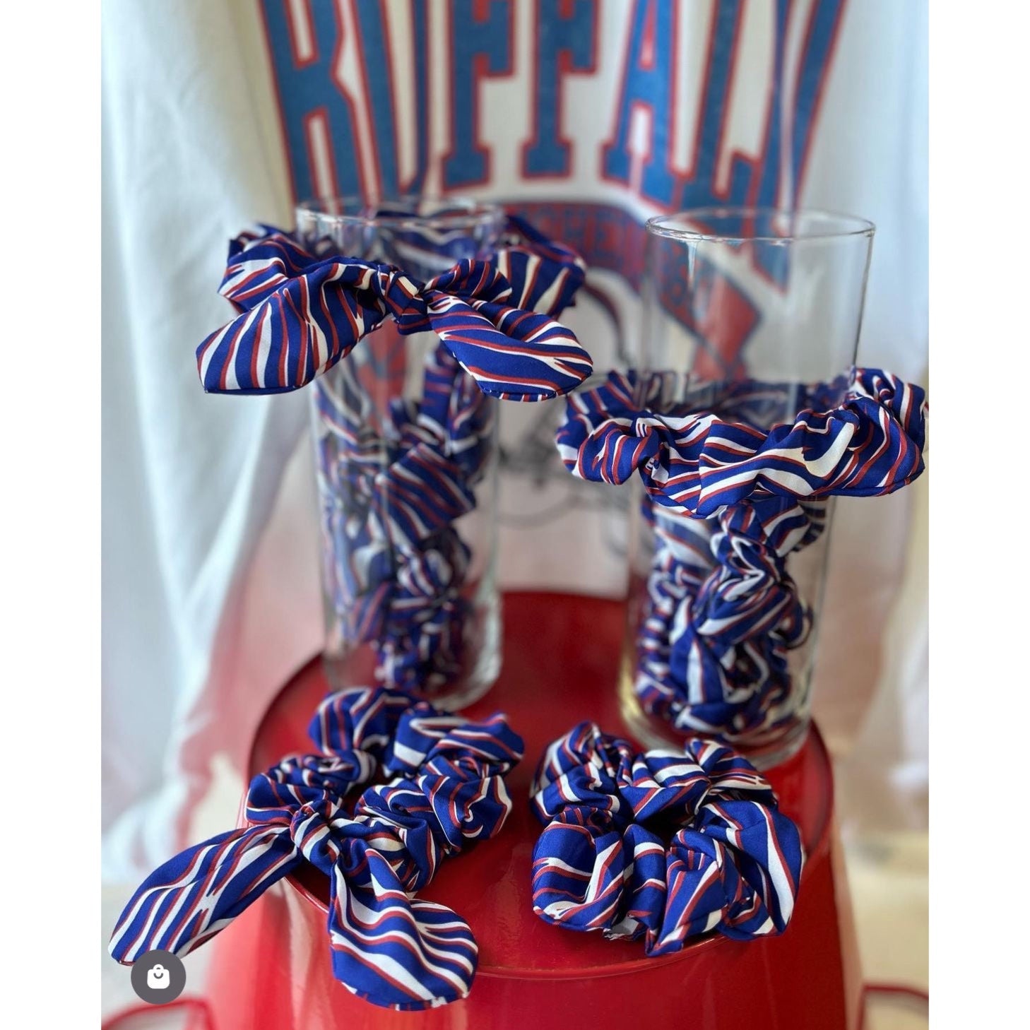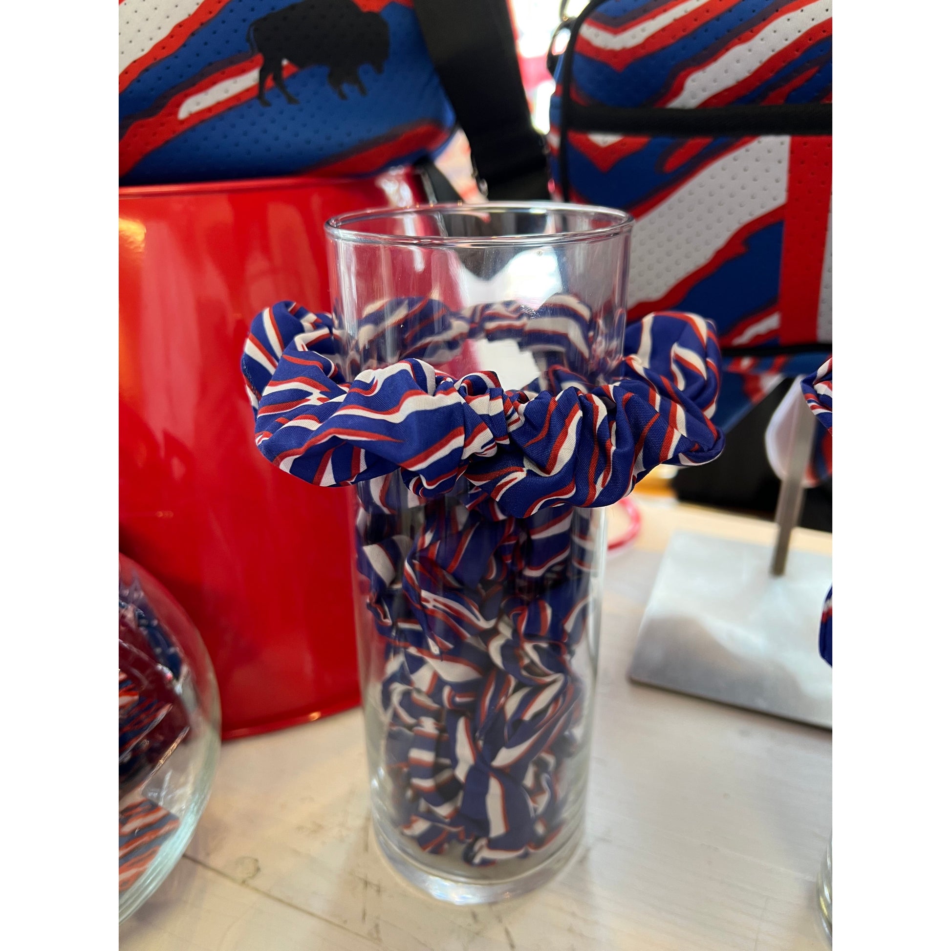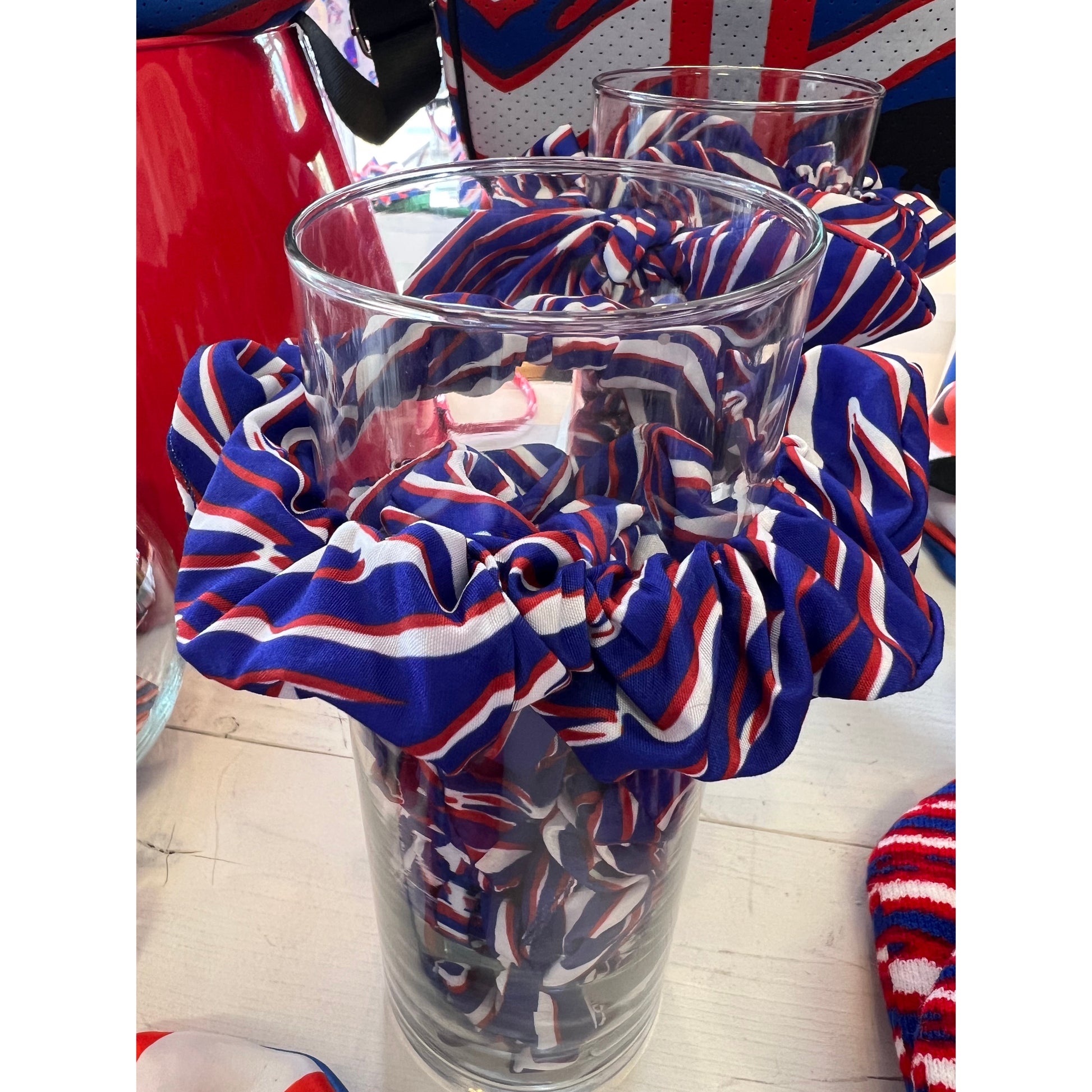Our Shout Stripes Scrunchies are a NEED for Game Day! Choose between 2 different styles - Bow or No Bow - or get both to match with your mini.